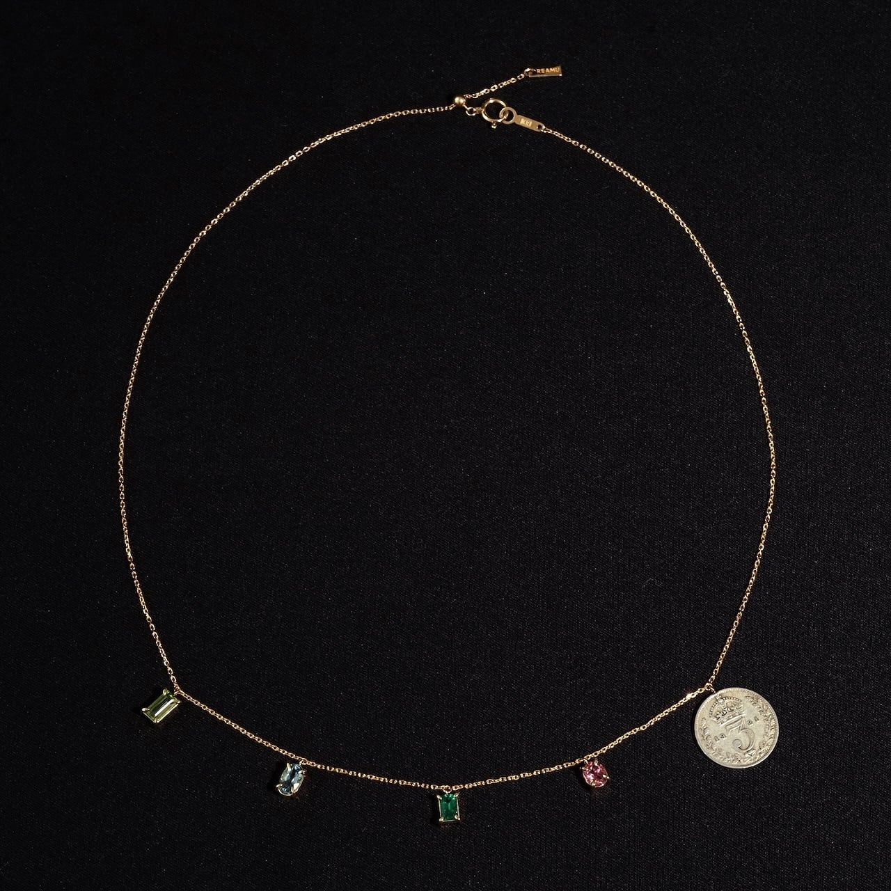 ペリドット、アクアマリン、エメラルド、ピンクトルマリン、1921年イギリス製コイン、18金ゴールド